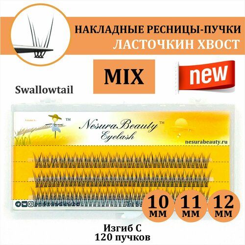 НАЙТИ ВЫГОДНЕЕ - NesuraBeauty / Накладные ресницы пучки Ласточкин хвост / Длина: MIX 10 11 12 мм, для макияжа и визажиста