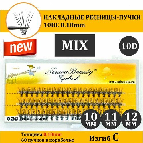 НАЙТИ ВЫГОДНЕЕ - NesuraBeauty / 10D / Накладные пучки ресниц / MIX 10 11 12 мм, 0.1, изгиб С 10Д / для макияжа и визажиста