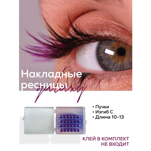 НАЙТИ ВЫГОДНЕЕ - Накладные ресницы пучки Papuk Beauty цветные GALAXY purple, длина 10-13