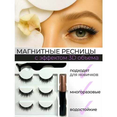 НАЙТИ ВЫГОДНЕЕ - Магнитные ресницы, набор многоразовых ресниц 3 пары с подводкой, пинцетом