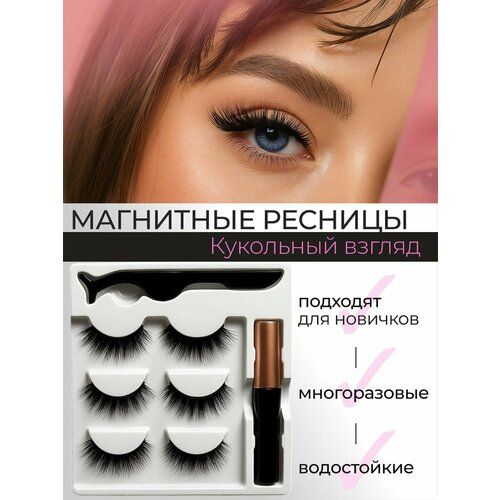 Магнитные ресницы "Кукольный взгляд" - это находка для тех, кто ценит комфорт, качество и простоту в использовании. В комплекте вы найдете 3 пары магнитных ресниц с разными изгибами - C+, D и D+.
