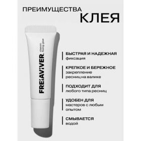 FREIAVIVER Fixing Glue Classic — профессиональный клей на водной основе для надёжной фиксации ресниц на валиках. Подходит для начинающих и опытных мастеров, удобен в работе с любыми типами ресниц: пористыми, жёсткими, тонкими. Обеспечивает быструю и бережную фиксацию даже при сложной выкладке.