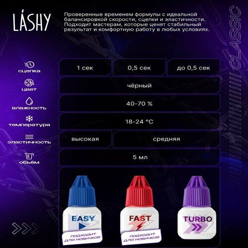 Новый черный клей FAST для наращивания ресниц от бренда LASHY by Lovely со скоростью сцепки 0,5 - 1 секунду имеет жидкую консистенцию, а при производстве используется только высококачественное и проверенное сырье.