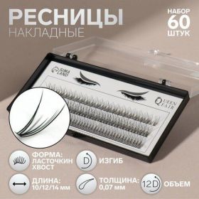 Набор накладных ресниц «Ласточкин хвост», пучки, 10, 12, 14 мм, толщина 0,07 мм, изгиб D, 12 D