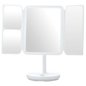 Зеркало косметическое с подсветкой Xiaomi Jordan&Judy Makeup Mirror (NV536) имеет раскладную конструкцию для удобства использования. Основная часть имеет диагональ 27 см, а по бокам находятся две дополнительных зеркальных поверхности с увеличением в два и пять раз соответственно. Угол наклона зеркала можно регулировать в пределах 0-180° благодаря шарнирной конструкции.