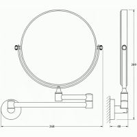 Эффект увеличения позволит тщательно и аккуратно произвести самые сложные манипуляции в макияже. Также удобно для использования во время бритья. Зеркало поворачивается вокруг своей оси, что создает дополнительные удобства при использовании. Оправа выполнена из хромированной стали. Диаметр зеркала составляет 17 см.