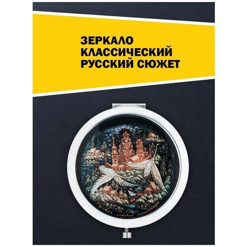 Стильное карманное увеличительное зеркало – актуальный аксессуар в повседневной жизни каждой девушки и женщины. Оно помогает поправить прическу и нанести макияж, акцентируя внимание на мелких деталях. Круглое складное зеркало для макияжа имеет двустороннюю зеркальную поверхность – одна поверхность без увеличения, вторая – с двукратным увеличением. Благодаря высокому качеству материалов, зеркало не деформирует отражение. Маленькое увеличительное зеркало можно разместить на гримерном или туалетном столике. Косметическое зеркало удобно держать в руке и носить с собой. Маленькое зеркальце свободно разместится в любой дамской сумочке, клатче, кармане или косметичке. Складное зеркальце имеет прочный металлический корпус и надежную защелку, которая не позволит ему случайно открыться. Ухаживать за аксессуаром легко и необременительно: достаточно протирать мини зеркальце мягкой сухой салфеткой. Настольное косметическое зеркало с увеличением станет надежным и функциональным спутником в Ваших путешествиях. Декоративное зеркало с сюжетом "Гуси-Лебеди" в стиле русской лаковой миниатюры органично впишется в любой интерьер и станет приятным подарком жене и подруге, любимой дочери или внучке, маме и бабушке. Маленькое карманное зеркало для ресниц упаковано в качественную и стильную коробочку.