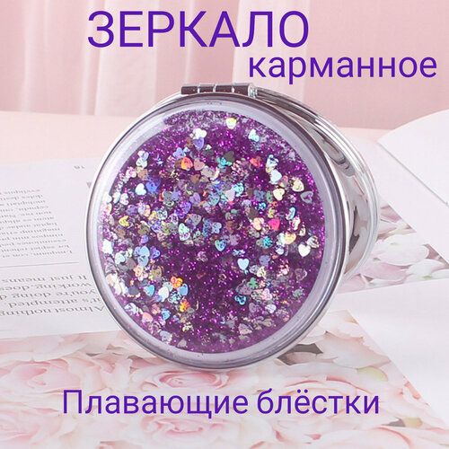 НАЙТИ ВЫГОДНЕЕ - Зеркало карманное складное с увеличением с плавающими блестками фиолетовый