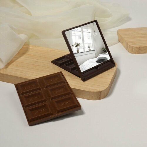 Компактное косметическое зеркало с необычным дизайном в виде шоколадки, можно использовать как карманное, дорожное, а также как настольное зеркало. Оно просто необходимо людям, использующим линзы на постоянной основе, чтобы при необходимости сразу устранить возникшую проблему. Благодаря складному механизму зеркальная поверхность не повредится. Такое зеркало станет идеальным подарком для ребёнка или девушки.