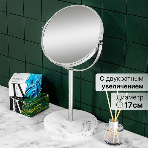 НАЙТИ ВЫГОДНЕЕ - Зеркало настольное двустороннее на мраморной подставке 18,5х15х34,5 см El Casa Хром