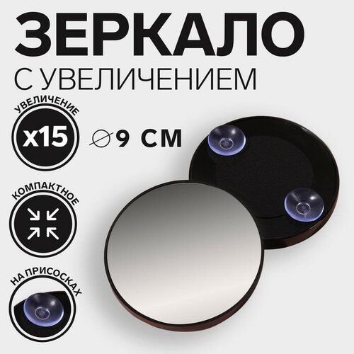НАЙТИ ВЫГОДНЕЕ - Зеркало макияжное, увеличение × 15, на присосках, d 9 см, цвет чёрный