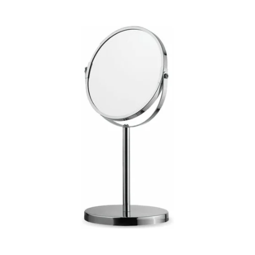 Зеркало настольное с увеличительным эффектом. С помощью изделия легко ухаживать за кожей, наносить макияж, проводить лечебные процедуры для лица. Зеркало поворачивается вокруг своей оси, что создает дополнительные удобства при использовании.