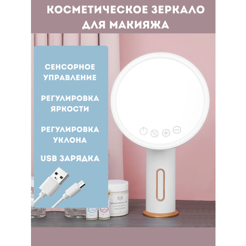 НАЙТИ ВЫГОДНЕЕ - Зеркало косметическое настольное с LED-подсветкой, регулировкой яркости и наклона, круглое, для макияжа