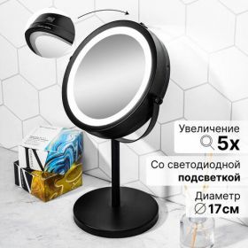 НАЙТИ ВЫГОДНЕЕ - Зеркало двустороннее на подставке 20,5х13,5х33 см El Casa Черное, со светодиодной подсветкой, с 5-кратным увеличением