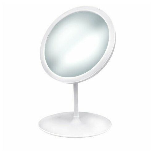 НАЙТИ ВЫГОДНЕЕ - Зеркало настольное с LED подсветкой для макияжа, диаметр 17см, 3 режима свечения, аккумулятор 800 mAh, цвет белый, WBZ, 609332