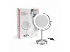 Зеркало косметическое, настенное, с LED подсветкой, сенсорное включение, зарядка Type - C, шнур в комплекте, корпус из нержавеющей стали, цвет черный. Габаритные размеры: высота 280 мм, длина 235 мм, диаметр зеркала 175 мм, диаметр посадочного седла 75 мм.