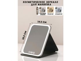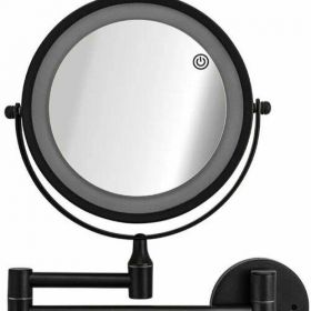 НАЙТИ ВЫГОДНЕЕ - Зеркало косметическое, настенное, с LED подсветкой, сенсорное включение, зарядка Type - C, шнур в комплекте, корпус из нержавеющей стали, цвет черный