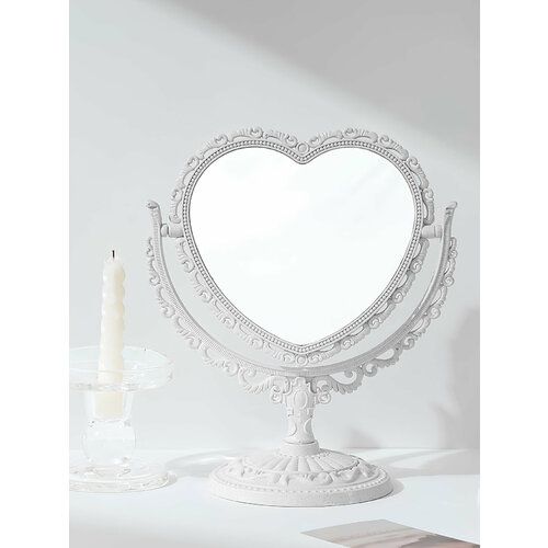 Это зеркало на подставке создано для тех, кто ценит удобство. Надежная подставка и устойчивая конструкция обеспечивают комфортное использование, а форма "сердце" добавляет романтичности и нежности вашему интерьеру. Идеально подходит для утреннего макияжа или вечернего ухода за кожей.