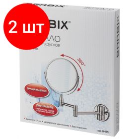 Внимание[Зеркало настенное BRABIX, диаметр 17 см, двухстороннее, с увеличением, нержавеющая сталь, выдвижное (петли), 604952] X 2 шт.