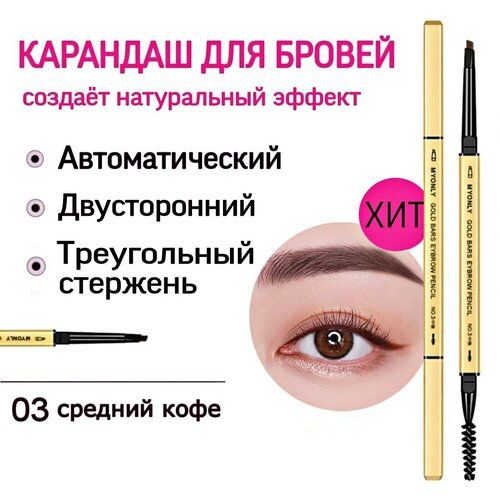 НАЙТИ ВЫГОДНЕЕ - Карандаш для бровей автоматический, двусторонний, треугольный, в золотистом корпусе. Коричневый