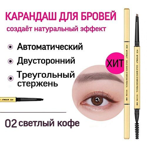 НАЙТИ ВЫГОДНЕЕ - Карандаш для бровей автоматический, двусторонний, треугольный, в золотистом корпусе. Светло-коричневый