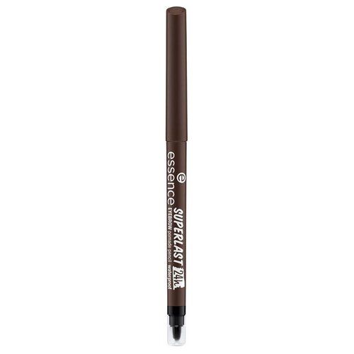 Карандаш для бровей Essence Superlast 24H Eyebrow Pomade Pencil имеет кремовую текстуру, заточенный кончик грифеля, выкручивающийся дизайн с точилкой и силиконовой кистью для бровей.