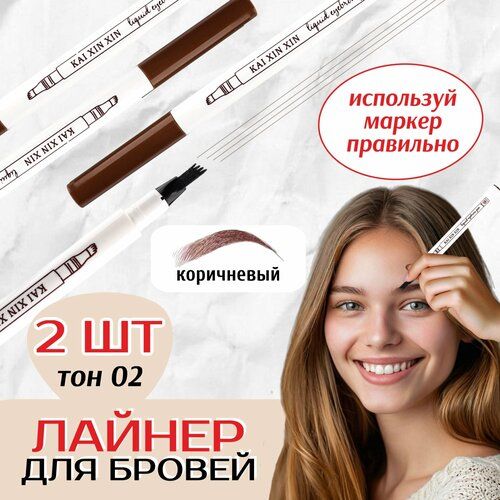 НАЙТИ ВЫГОДНЕЕ - Карандаш для бровей Fine Sketch, коричневый 2 шт / Водостойкий маркер для бровей / лайнер / Лайнер для бровей / маркер