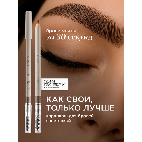 НАЙТИ ВЫГОДНЕЕ - Карандаш для бровей стойкий с щеточкой MIXIT MAKE UP оттенок 01 мягкий коричневый. Декоративная косметика для макияжа