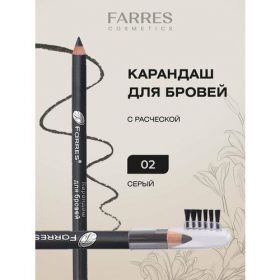 НАЙТИ ВЫГОДНЕЕ - Карандаш для бровей Farres деревянный с щеточкой, тон 02 серый