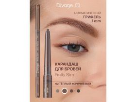 Divage Карандаш для бровей автоматический с щеточкой Pretty Slim Тон 02 теплый коричневый 103003882641