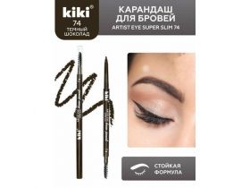 Карандаш для бровей KIKI Artist Eye Super Slim, оттенок 74 темный шоколад с щеточкой для придания формы 101850015844