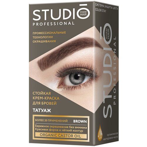 НАЙТИ ВЫГОДНЕЕ - Крем-краска стойкая Studio Professional для бровей с эффектом татуажа, темно-коричневый, 30 мл + оксид 20 мл