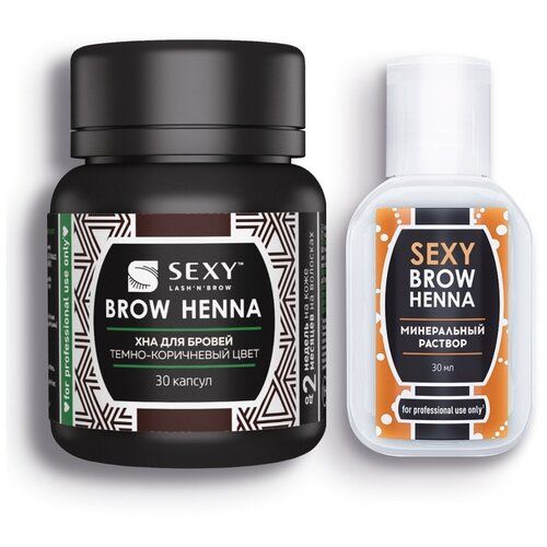 НАЙТИ ВЫГОДНЕЕ - SEXY BROW HENNA комплект, хна для бровей 30 капсул + раствор минеральный 30мл, темно-коричневый, 30 мл