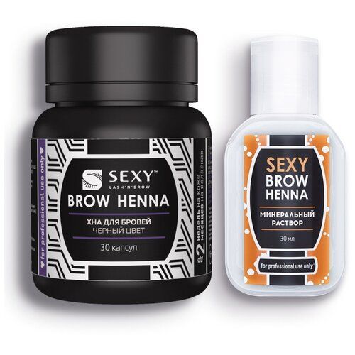 НАЙТИ ВЫГОДНЕЕ - SEXY BROW HENNA комплект, хна для бровей 30 капсул + раствор минеральный 30мл, черный, 30 мл