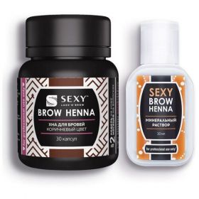 НАЙТИ ВЫГОДНЕЕ - SEXY BROW HENNA комплект, хна для бровей 30 капсул + раствор минеральный 30мл, коричневый, 30 мл