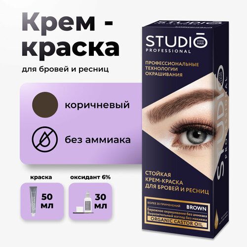 НАЙТИ ВЫГОДНЕЕ - Стойкая краска для бровей и ресниц STUDIO Professional коричневая 50/30мл