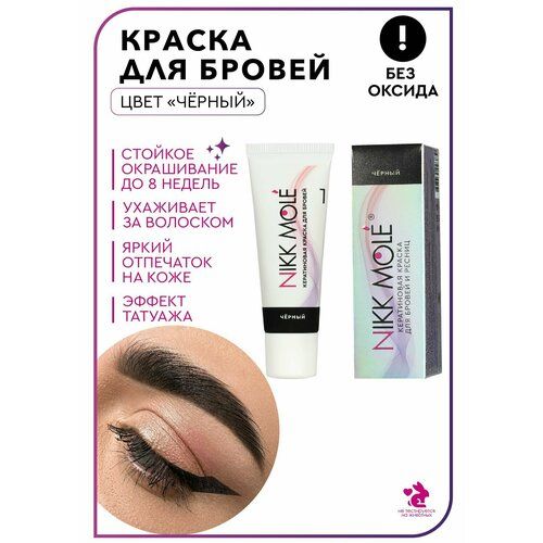 Краска NIKK MOLE формирует натуральный отпечаток цвета на коже при окрашивании бровей и не затемняет волосок после процедуры ламинирования.
