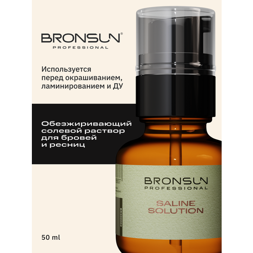 Солевой раствор Bronsun - это профессиональное средство для обезжиривания бровей и ресниц, которое обеспечивает оптимальный результат окрашивания, ламинирования и долговременной укладки.
