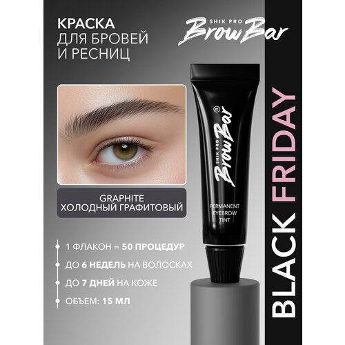 НАЙТИ ВЫГОДНЕЕ - Краска для бровей и ресниц SHIK PRO BROW BAR PERMANENT EYEBROW TINT серая GRAPHITE профессиональная 15 мл