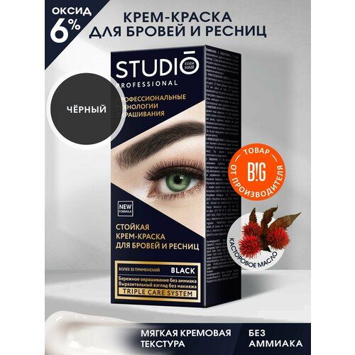 НАЙТИ ВЫГОДНЕЕ - Studio Стойкая краска для бровей и ресниц Чёрная (Black), 50/30 мл