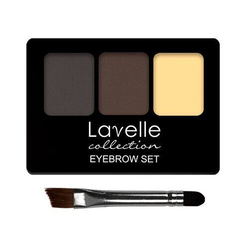 Набор для бровей LavelleCollection включает в себя тени для бровей в двух оттенках, воск для фиксации и двойную кисточку.