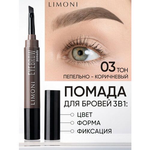 НАЙТИ ВЫГОДНЕЕ - Limoni Помада для бровей Eyebrow Pomade, 1.6 мл, 03 Ash Brown