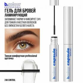 Гель для бровей с эффектом ламинирования BCOLOUR PROFESSIONAL и технологией 24H FIX&CARE ухаживает и стойко фиксирует даже самые непослушные волоски 24 часа, не делая их жесткими.