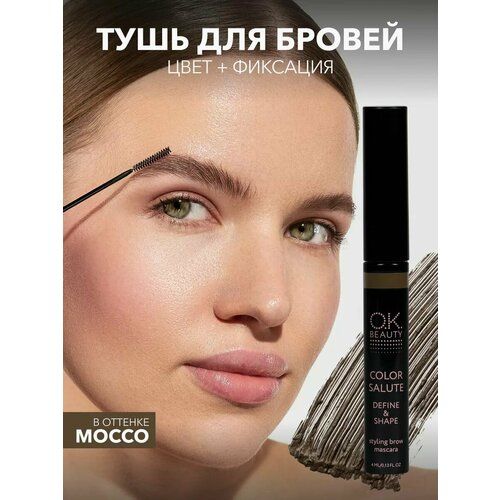 НАЙТИ ВЫГОДНЕЕ - OK BEAUTY Тушь для бровей, коричневая, стойкая, фиксирующая, водостойкая, оттеночный цветной гель, оттенок Mocco, 4 мл