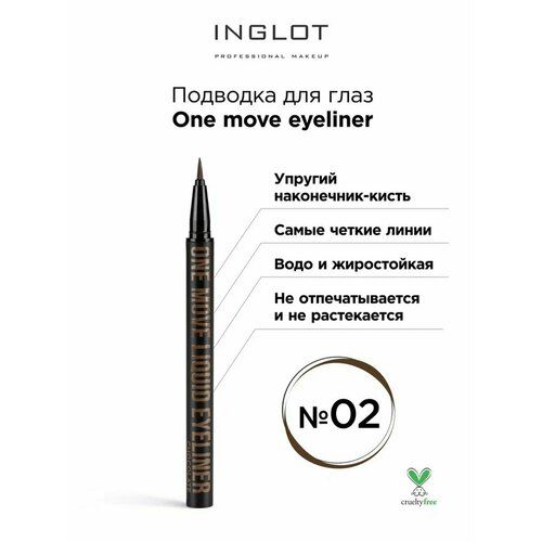 Подводка фломастер для глаз INGLOT № 02 коричневая, One move eyeliner - продукт позволяющий провести идеальную линию одним движением руки
