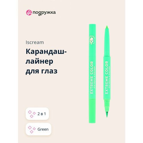 НАЙТИ ВЫГОДНЕЕ - Карандаш-лайнер для глаз ISCREAM EXTREME COLOR 2 в 1 (green)