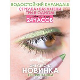 НАЙТИ ВЫГОДНЕЕ - Подводка-тени-кайал MAKE U MAKE E10 24ч, фисташка, гипоаллергенная, водостойкая