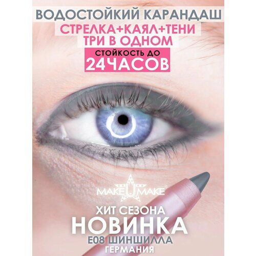 НАЙТИ ВЫГОДНЕЕ - Подводка-тени-каял, 3в1, 24 часа, MAKE U MAKE, шиншилла + точилка