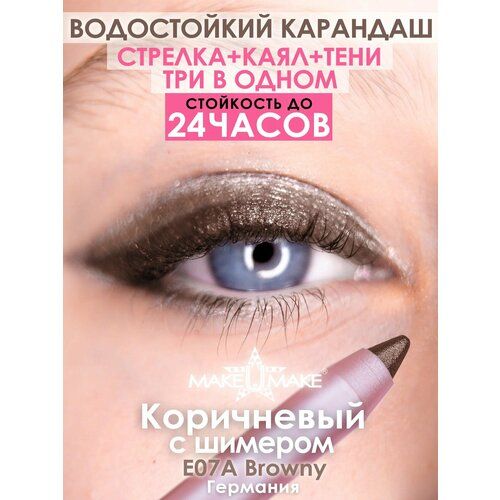 НАЙТИ ВЫГОДНЕЕ - Подводка-тени-каял 24 часа, 3в1, MAKEUMAKE, коричневый c шиммером + точилка
