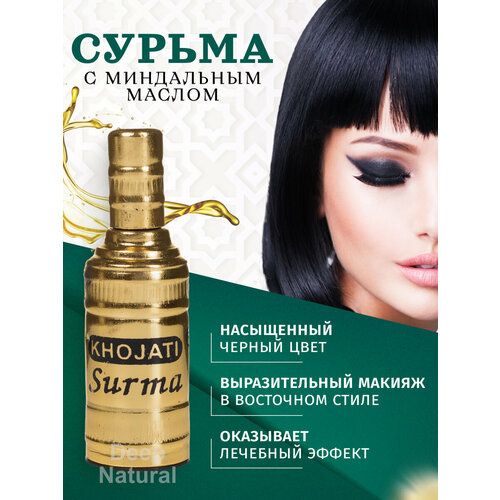 Состав: красная охра 50%, черный краситель из миндаля 33%, цинка карбонат 17%, масло миндальное 5%. Сурьма Мумтаз с миндальным маслом для улучшения роста ресниц. Сурьма делает ваши глаза здоровыми, блестящими и яркими. Она очищает поверхность глаза, хрусталик, а микроэлементы входящие в ее состав способствуют улучшению кровообращения в глазе, улучшению работы слезной железы, снимают усталость при работе с компьютером и покраснение глаз. Внимание